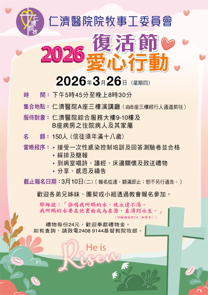 院牧服務由仁濟醫院院牧事工委員會提供